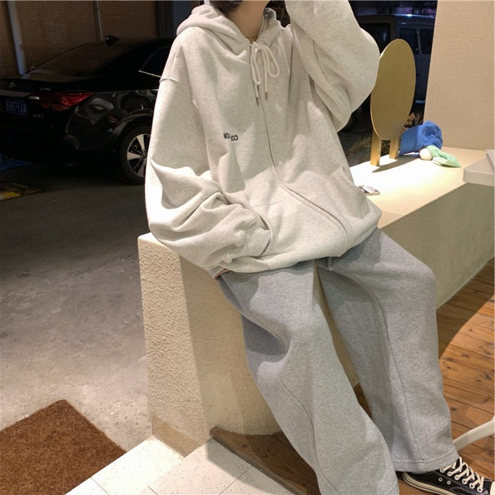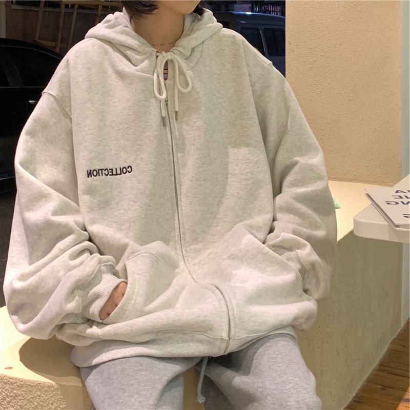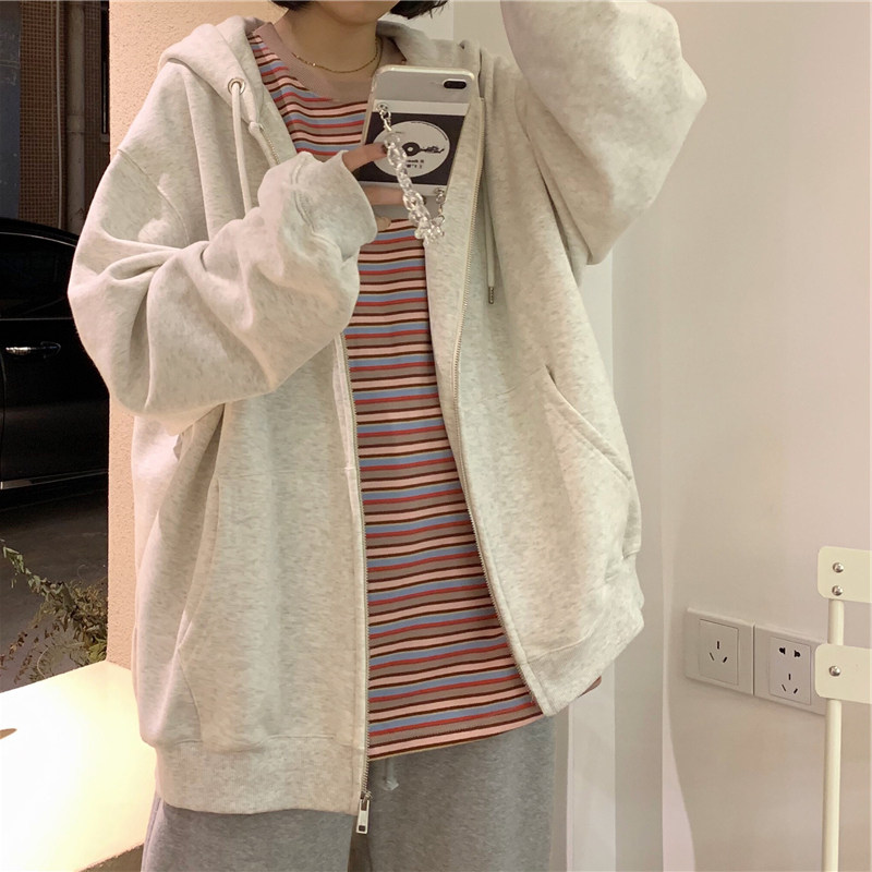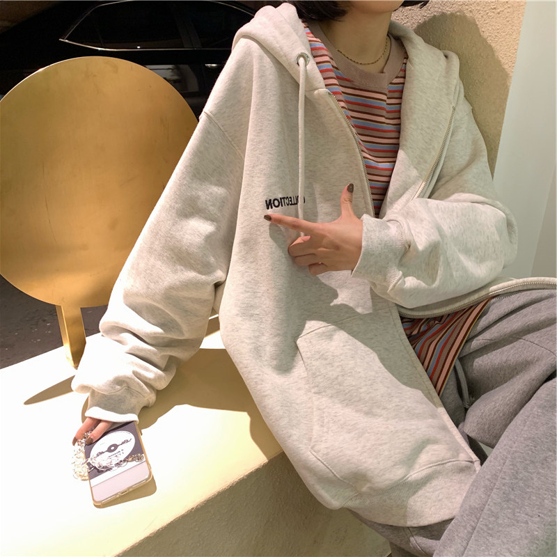 ins super fire sweater women's autumn and winter Korean version plus velvet thickened hooded zipper shirt jacket tide student loose clothes