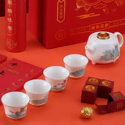 Songfa Jiangshan picturesque national tide ceramic kung fu tea set tea set tea cup teapot gift box home gift tea set