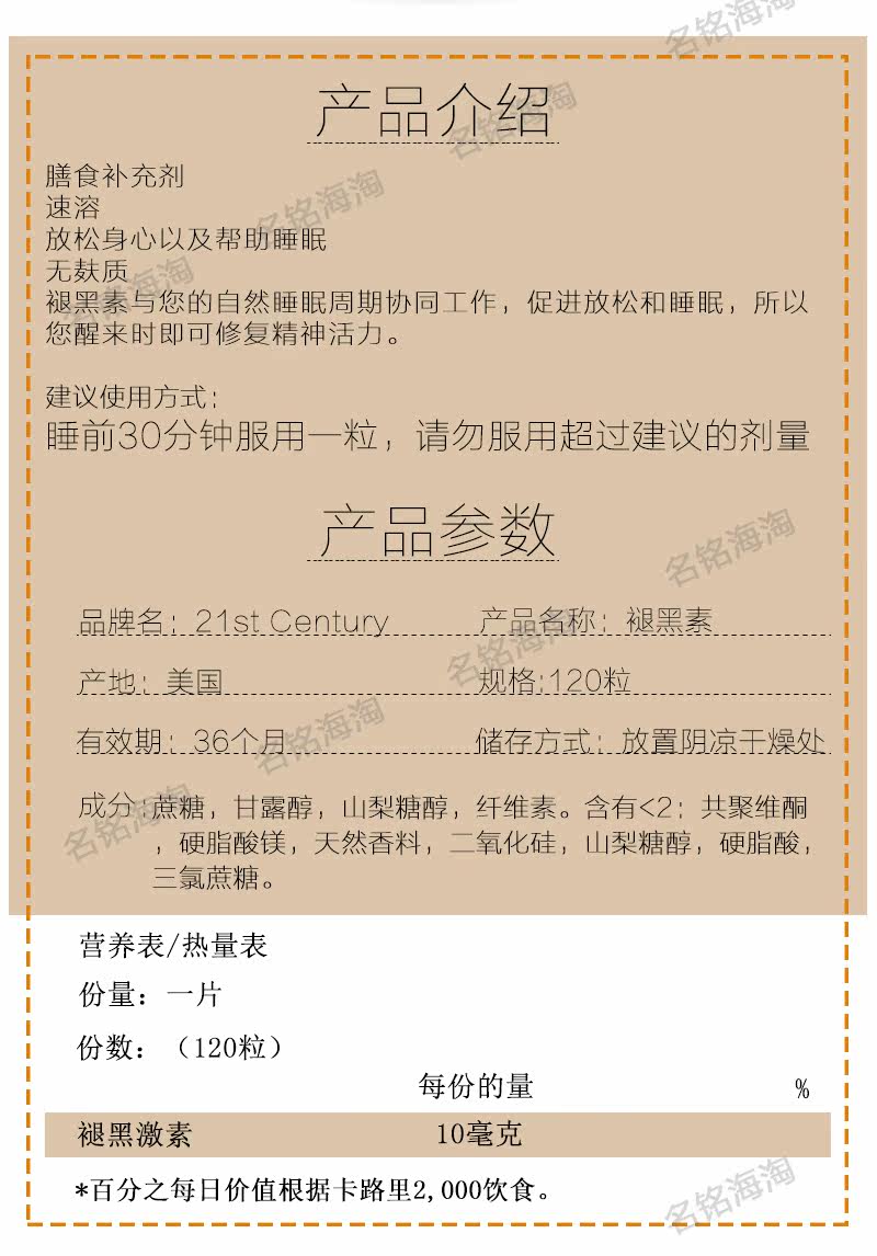 21st Centurty melatonin 120 grain 10MG improves sleep quality fast asleep conditioning sleep time