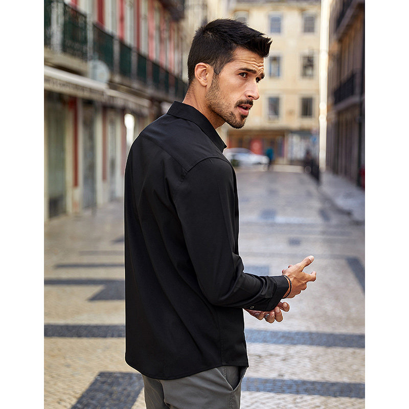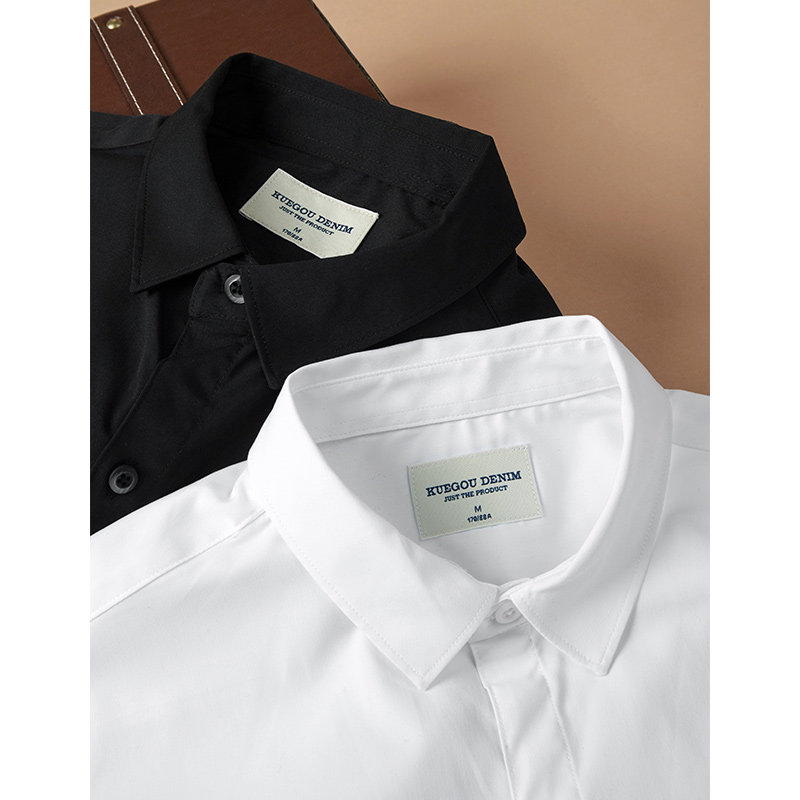 Kuegou Autumn Men's Long Sleeve Shirt Men's Korean Slim Slim Casual Business Black Shirt 3282