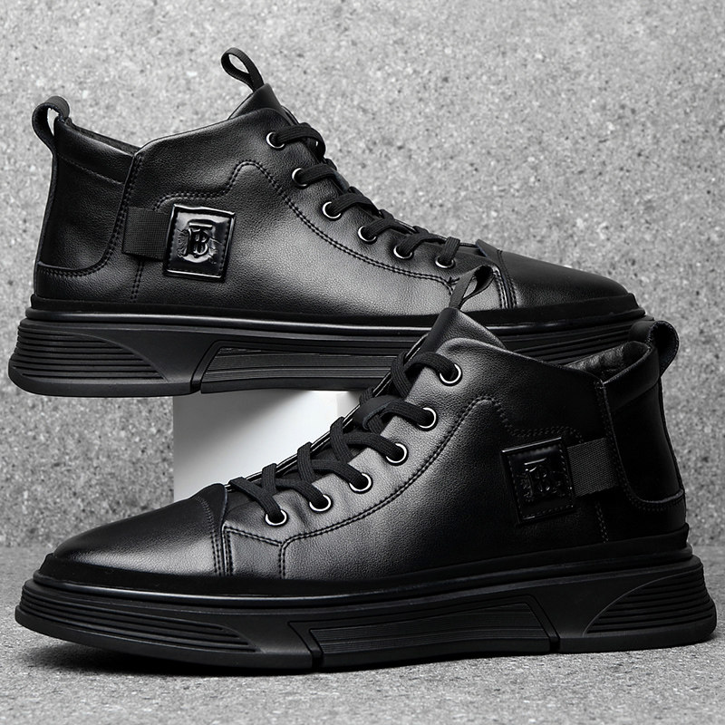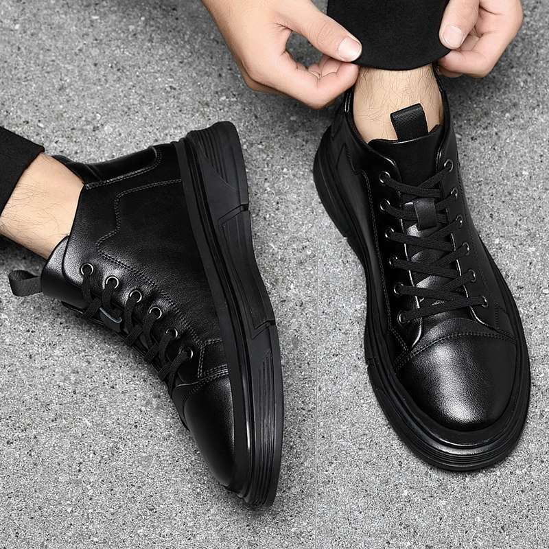 Leisure in the,Casual High-cylinder leather shoes with a high