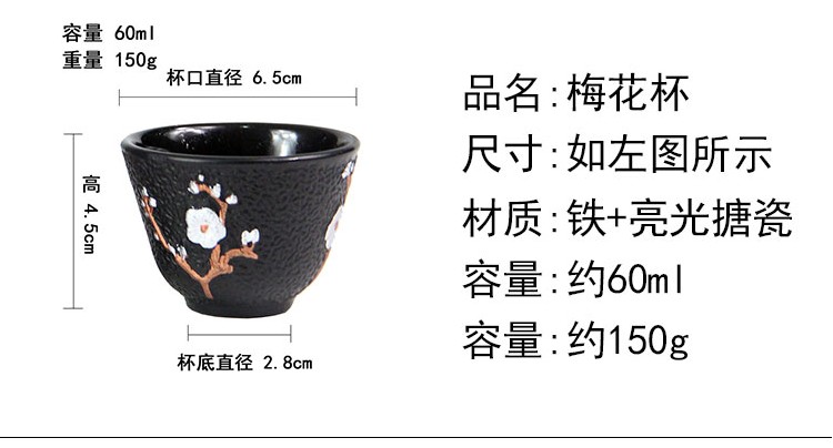 Sketching Plum Blossom Iron Cup Cast Iron Tea Cup Tea Drinking Cup Iron Pot Kung Fu Tea With Matching Iron Cup Raw Iron Cup Smelling Cup Smelling Cup