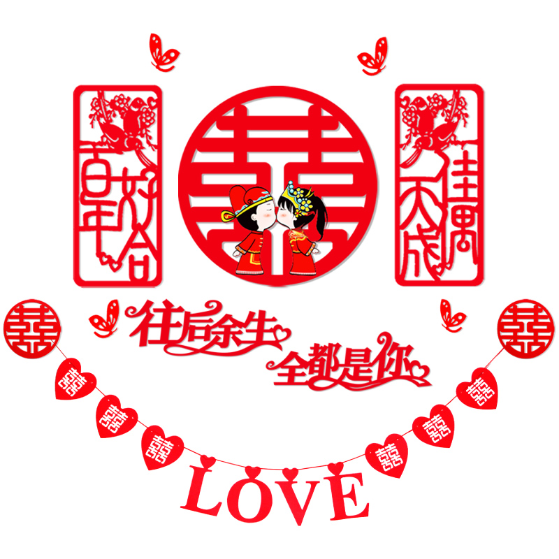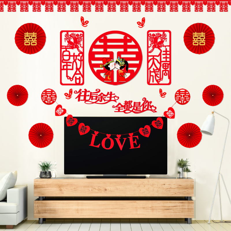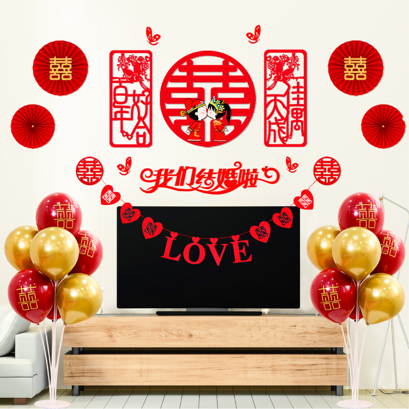 Wedding arrangement wedding room decoration set living room TV background wall pull flower creative romantic wedding supplies Daquan