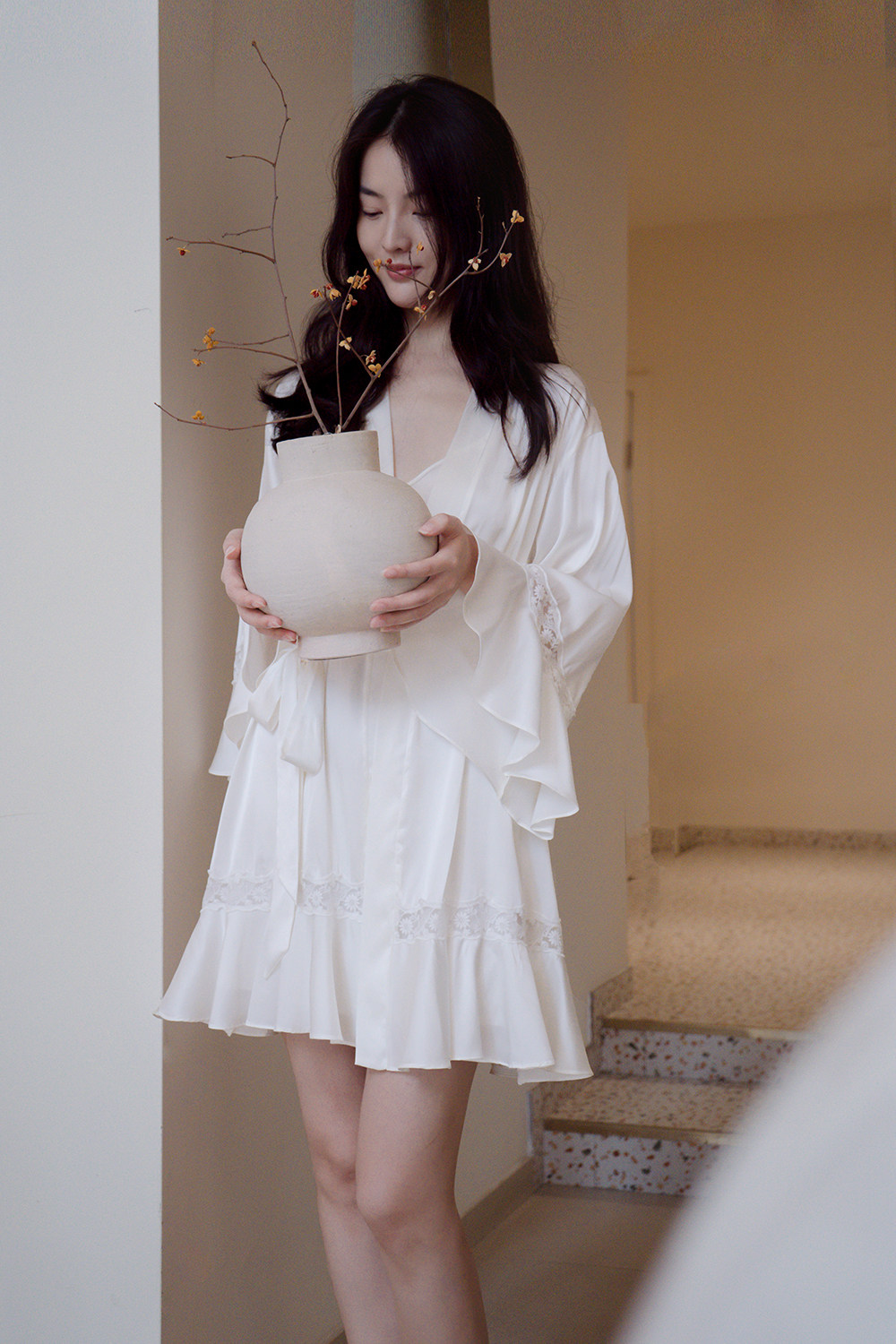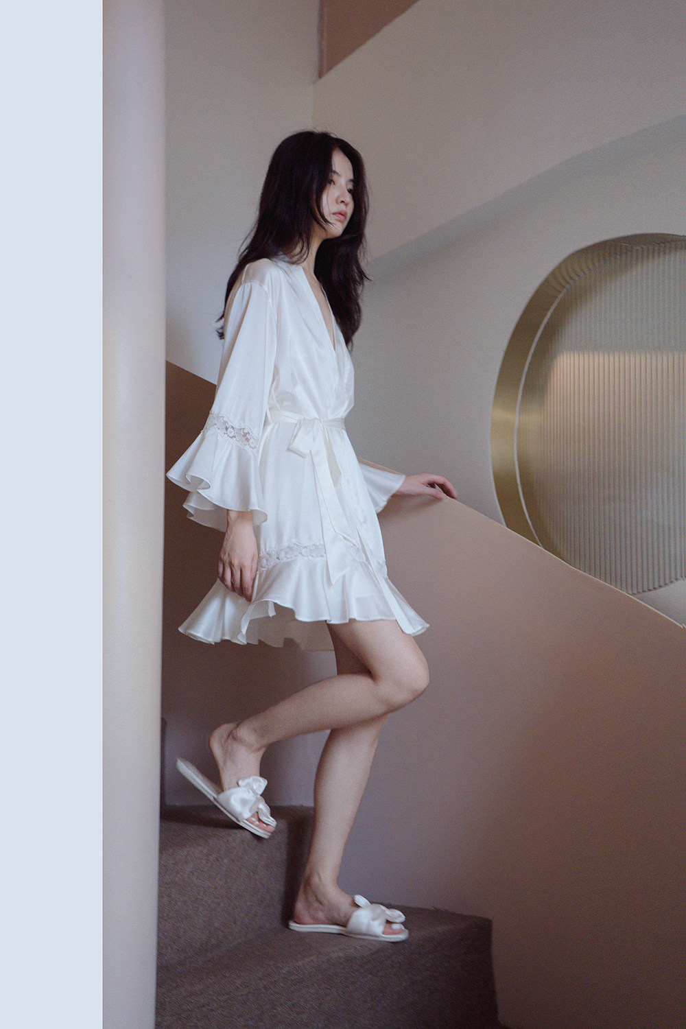 WakeUp Wake Up) Original designer silk Mulberry silk Elegant sweet bride Wedding morning robe Pajama Set