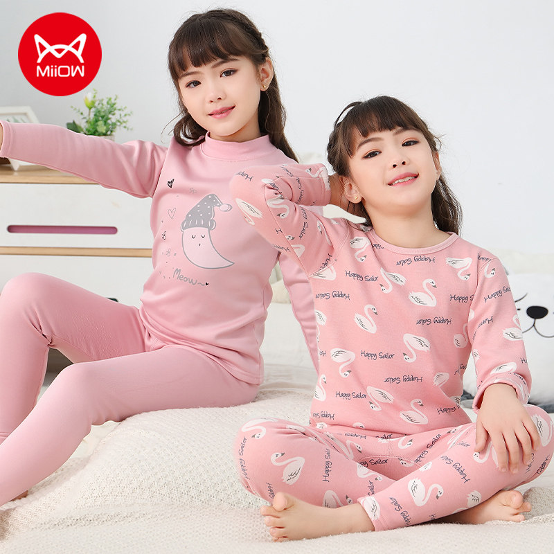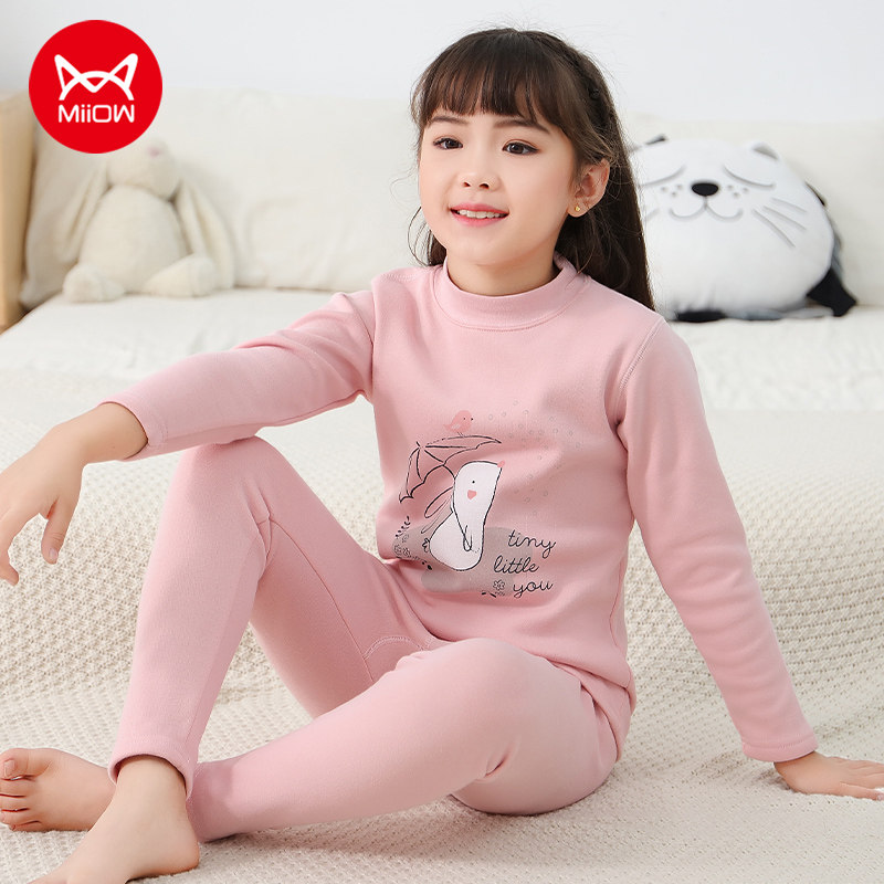 Cat girl hot clothes children's plus velvet thick autumn clothes sanitary pants big children's suits autumn and winter girls winter