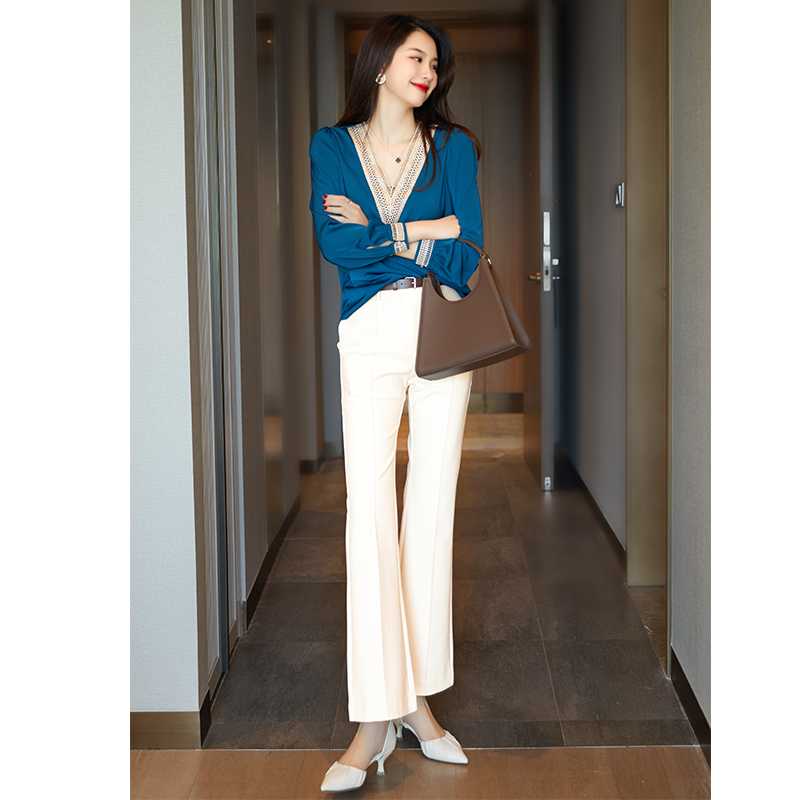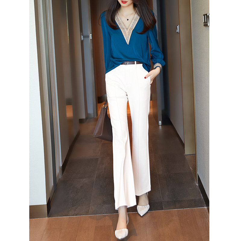 White Pituitary Micro Horn Pants Woman High Waist Display Slim 2021 Spring Autumn Season New Pants 100 Lap Straight Barrel Loose Casual Pants