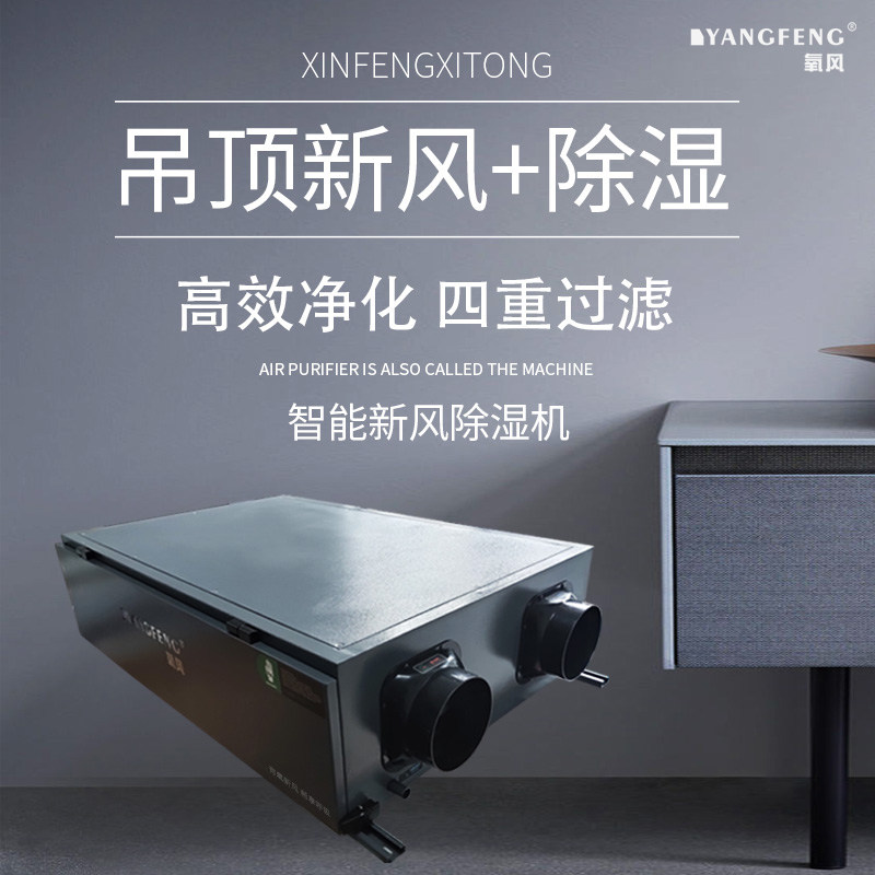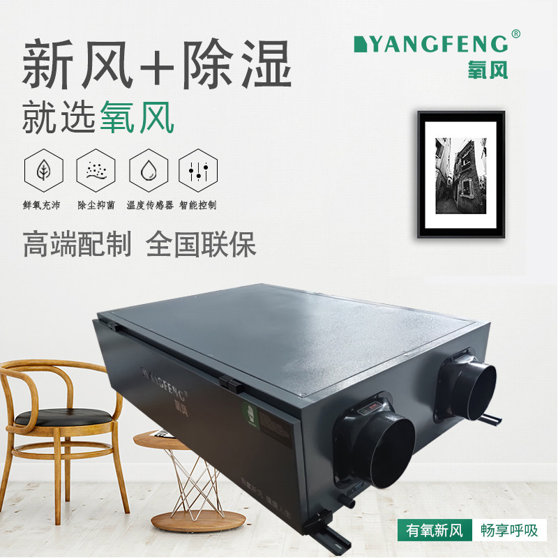 Oxygen wind full heat exchange fresh air dehumidification integrated machine system ceiling central pipe villa basement home