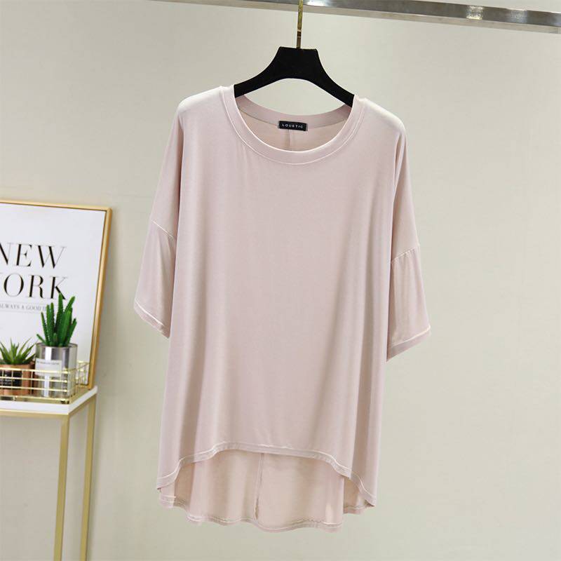 Modale round collar middle sleeve T-shirt woman front short rear long loot undershirt Modern Classical Square Dance Practice-Taobao