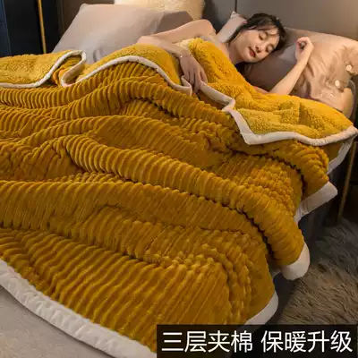 Thickened three-layer blanket quilt coral velvet blanket double flannel winter warm small nap blanket sheets winter quilt