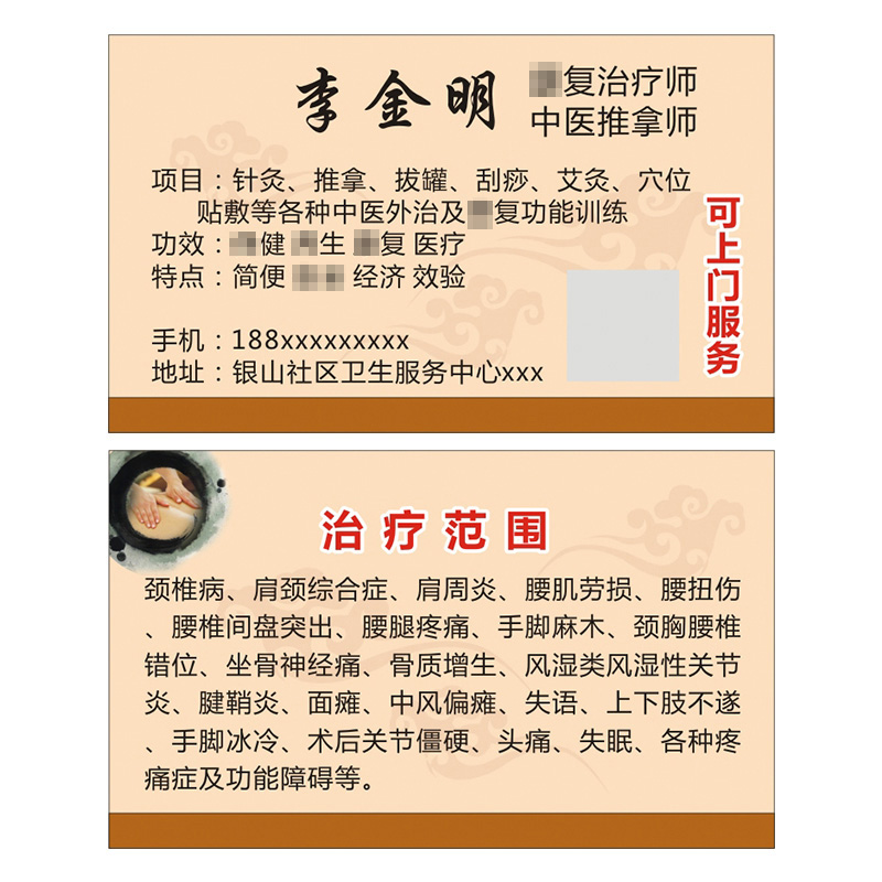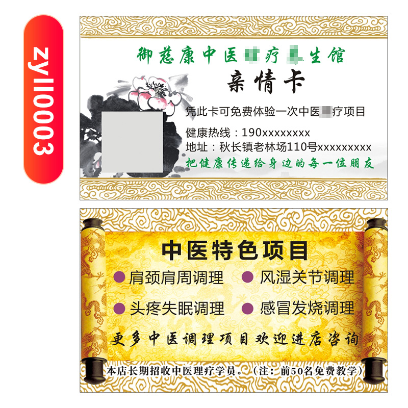 Traditional Chinese medicine physiotherapy Massage business card production Clinic Moxibustion free design health hall experience card custom-made Tuina health hall Tuoke card custom number of times Business waterproof pvc membership card coupon