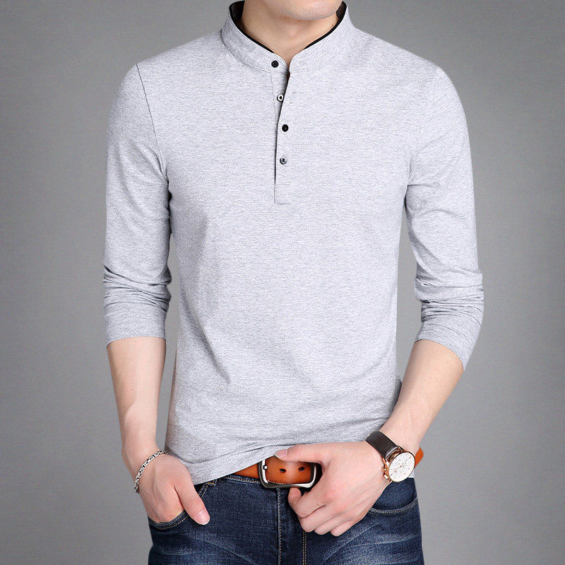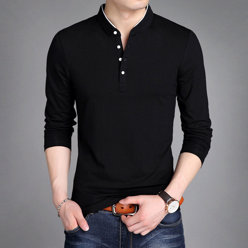 Men's clothing stand-up polo shirts men long sleeves T-shirt pure cotton pure color Korean version swarm with undershirt T-shirt T-shirt