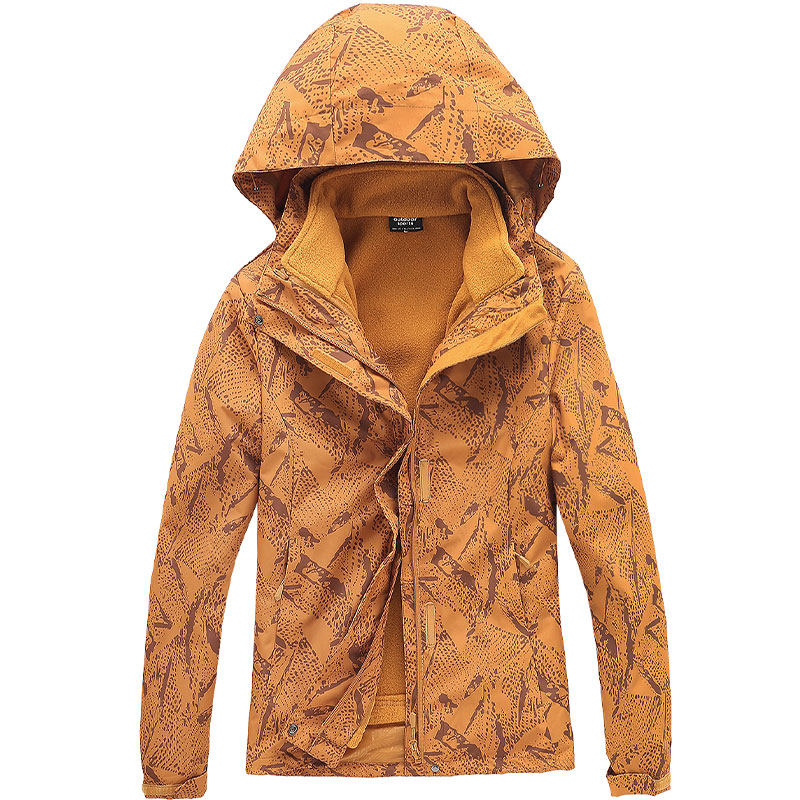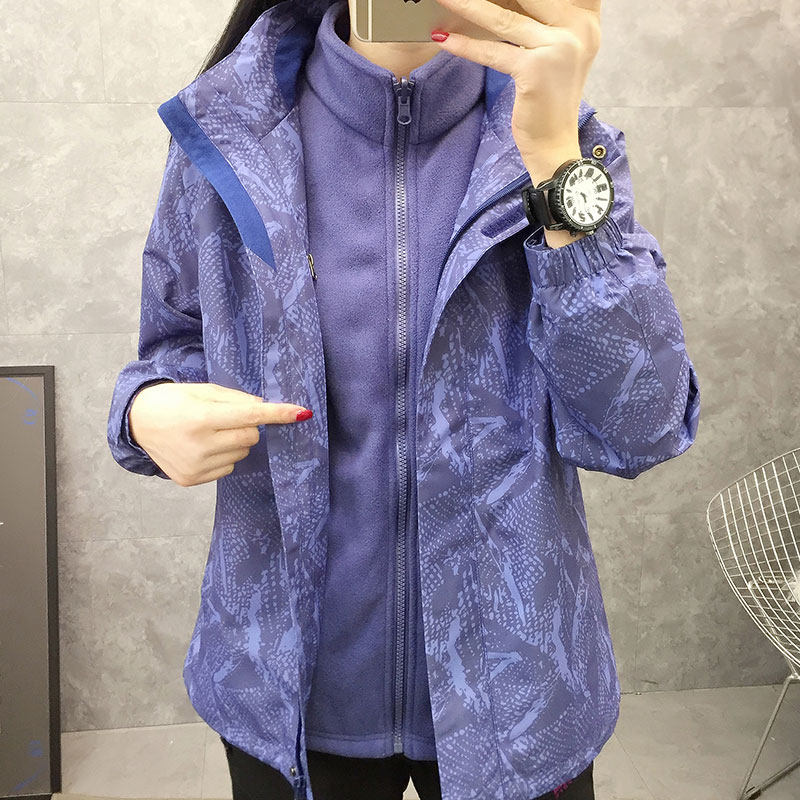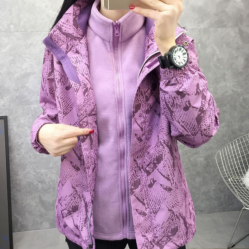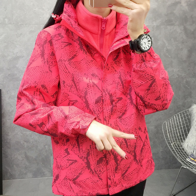 Outdoor charge coat autumn winter female printing crawl inner bile three-in-one or two pieces can be removed and thick wind climbing