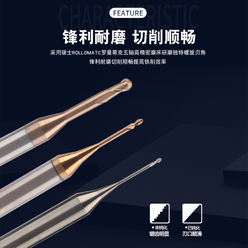 Tiny Diameter Long Neck Deep Trench Knife Ball Knife 60 Degrees 65 Degrees Steel Use Aluminum With 2-Edged Ball Head Tungsten Steel Deep Groove Milling Cutter