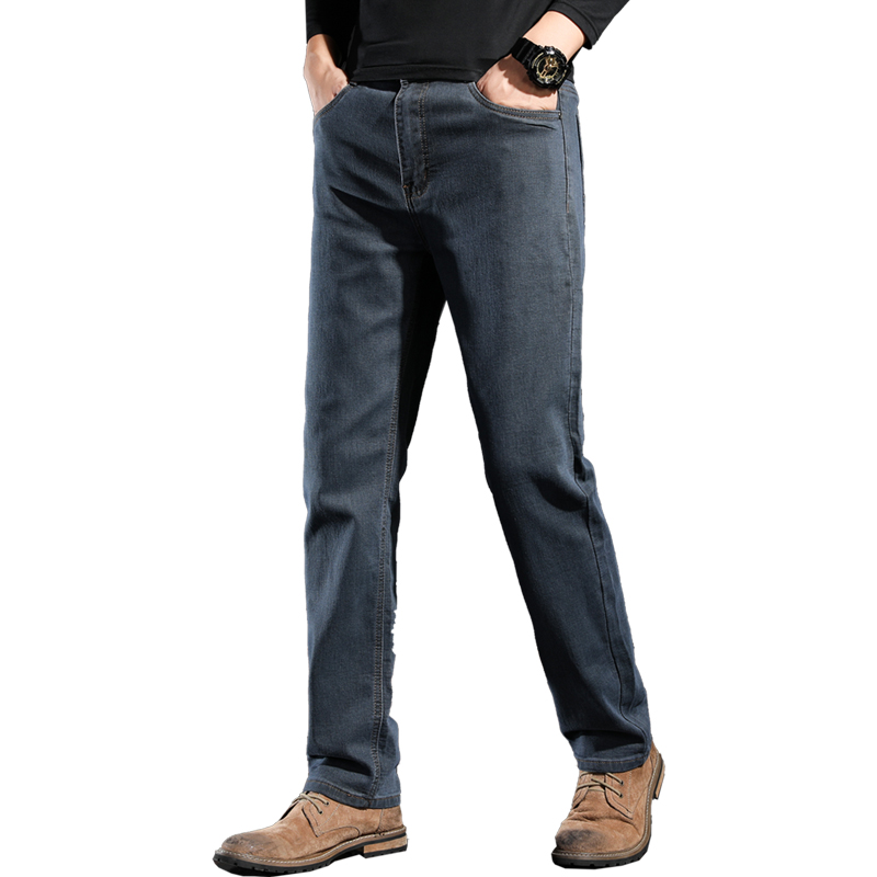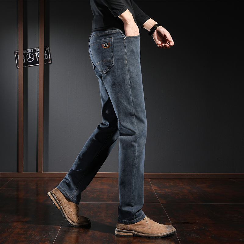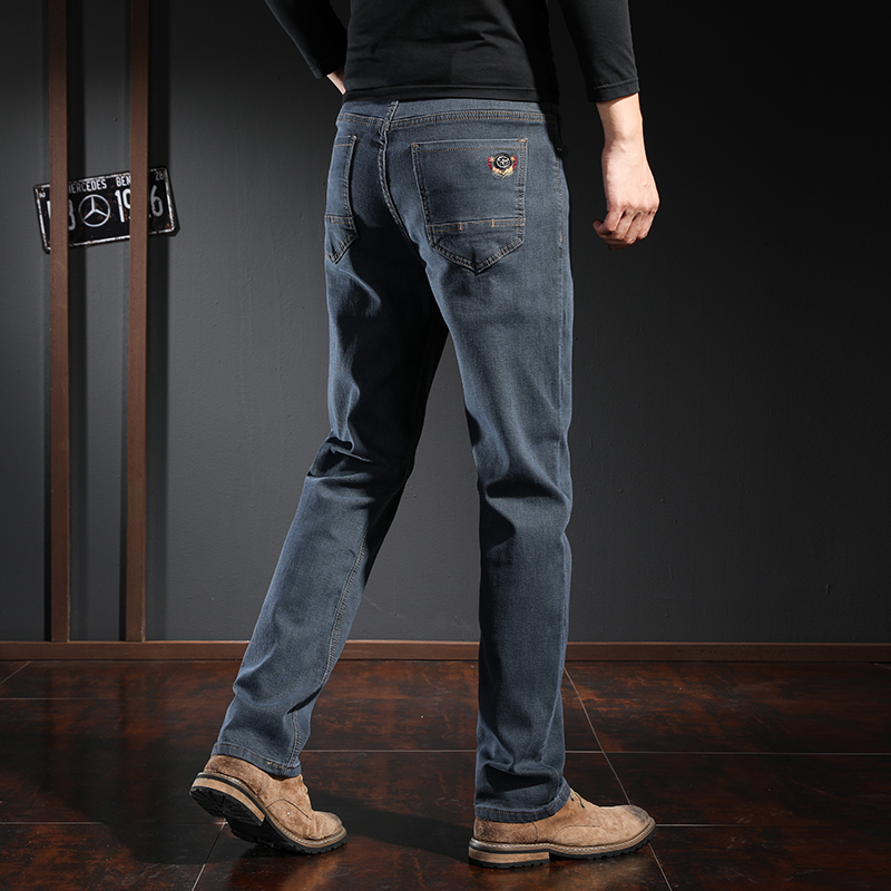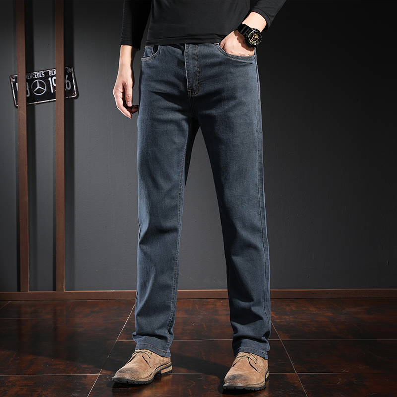 Autumn blue-gray jeans men's straight loose high-end casual stretch 2022 new autumn and winter fleece pants