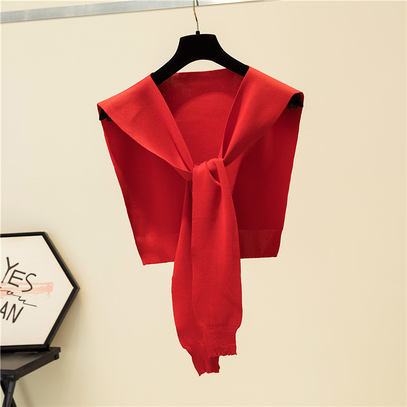 Fall Net Red Pure Color Knotted Air-conditioned Room Hitch Shoulder small shawl summer Outer lap Knitted Scarves Women Neck neck girds