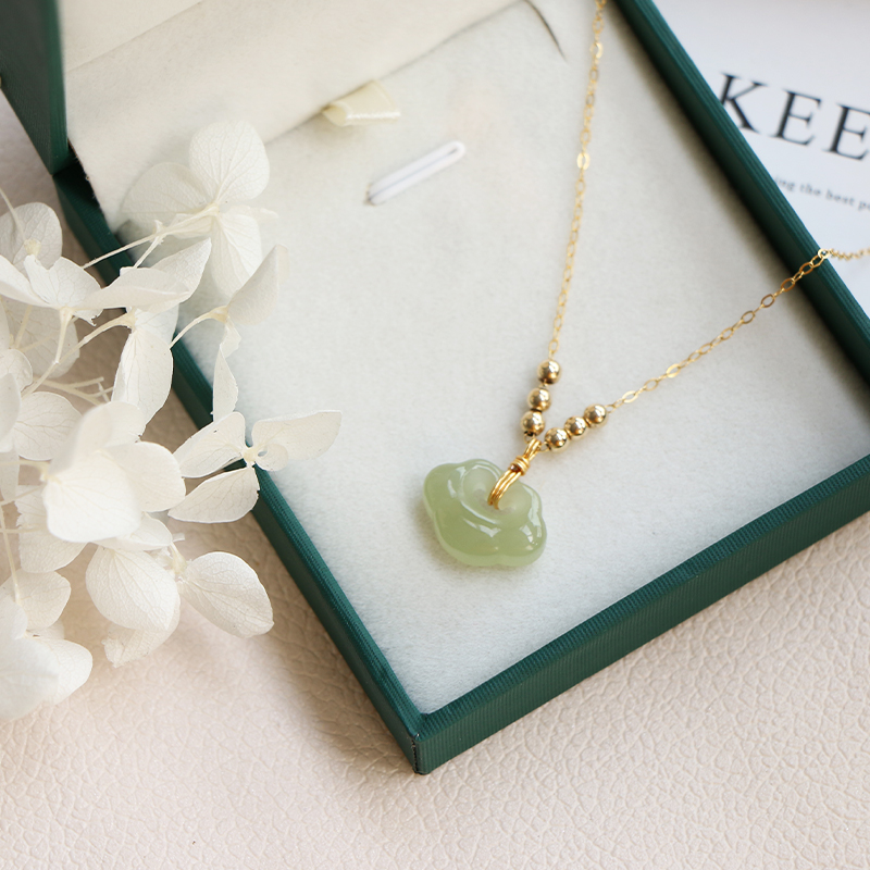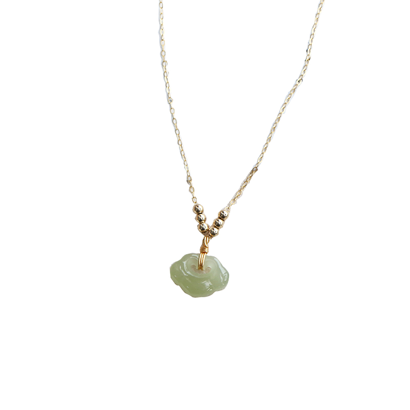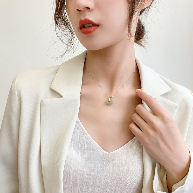 Necklace woman 2021 new light extravagant and small crowdsourced autumn and winter and field jade small and safe lock and long life lock bone chain pendant