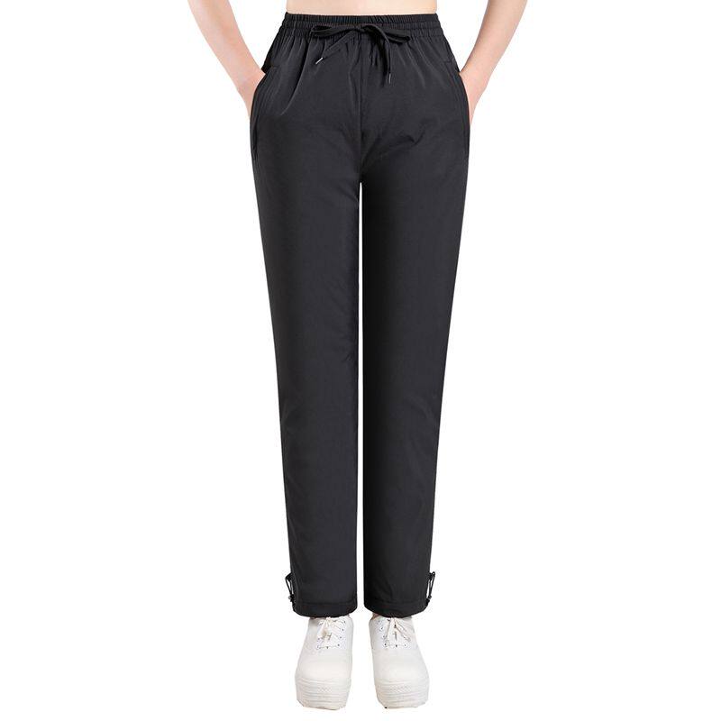 Outdoor Winter Moms White Goose Down Middle Aged Down Pants Woman Outside Wearing High Waist Thickening Straight Cylinder Loose Cotton Pants