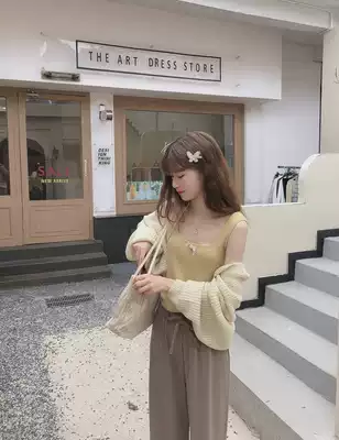 MOBAI gentle and cute milky yellow knitted bow suspender top 2020 autumn new inner back bottoming