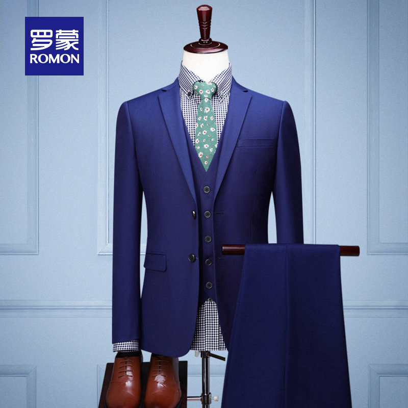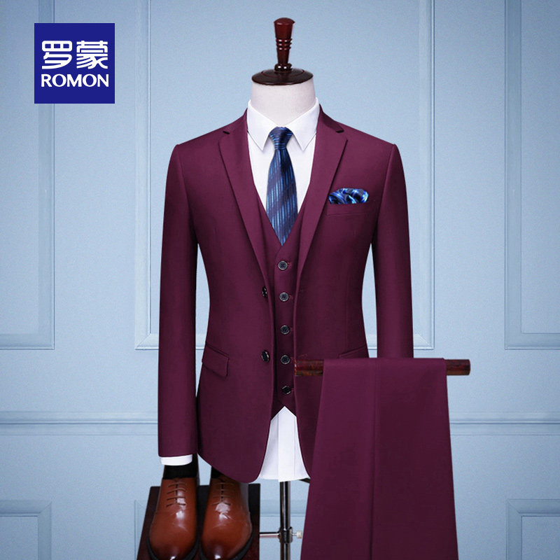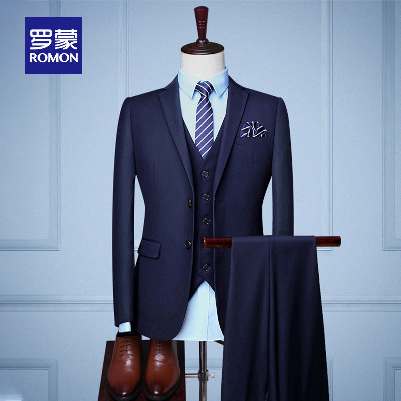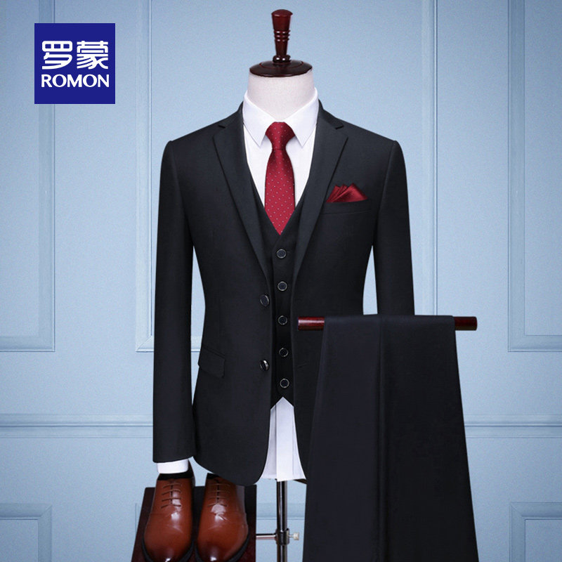 Romon Slim Suit Men's 2022 Spring New Business Tooling Professional Dress Middle-aged Youth Suit Vest Suit