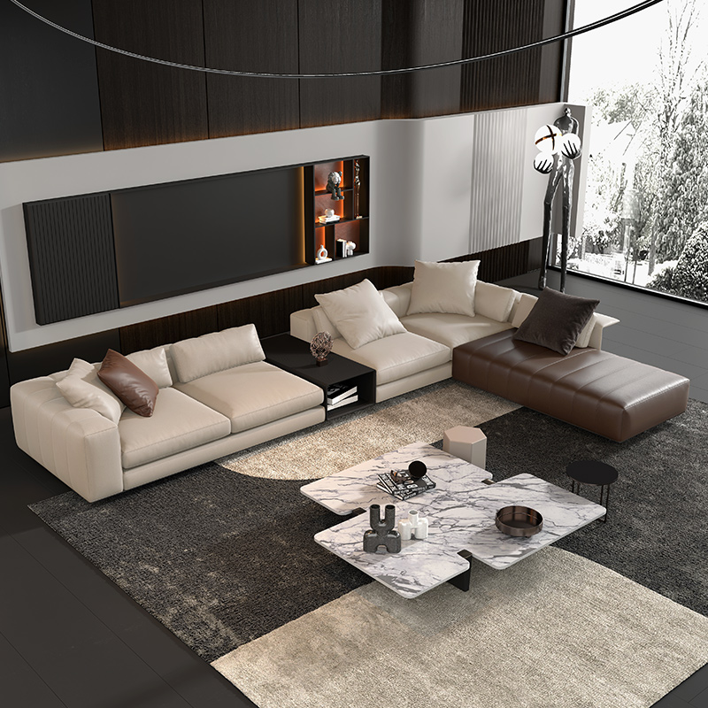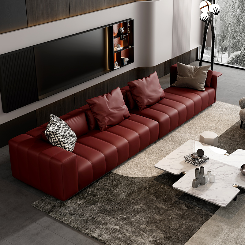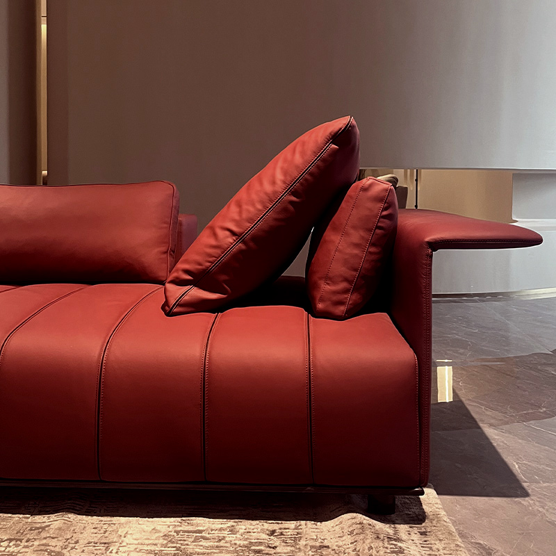 Milotti piano keys Italian minimalist leather sofa living room top layer cowhide high-end villa Connery model room