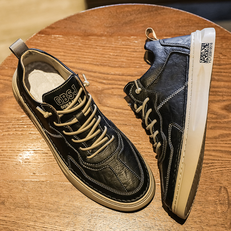 Men Shoes 2022 New Korean Version Trendy Men Casual Leather Shoes 100 Hitch Genuine Leather Board Shoes Men's Summer Breathable Thin