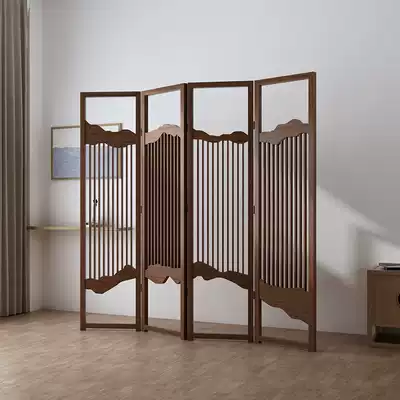 New Chinese screen partition Solid Wood Hollow grille folding mobile living room teahouse office decoration art customization