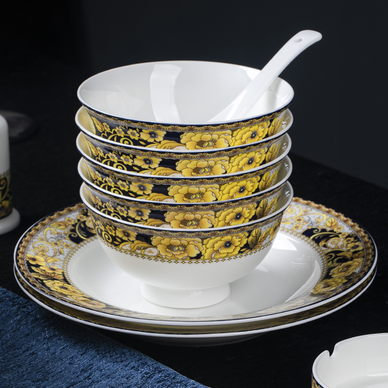 Zero paint Nine Bowl Dish Suit Chinese Home Jingde Town Glazed Polychrome Bone Porcelain Bowl Pan Spoon Quick Combination Cutlery Gift