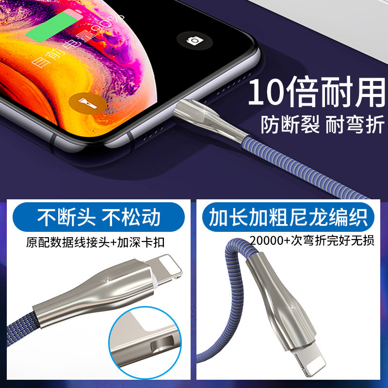 Apple 12 data line iphone11 charging wire machine x fast charging pro mobile phone max punching wire xr shiny ipad flat ip7plus lengthened 2 m short portable 8p
