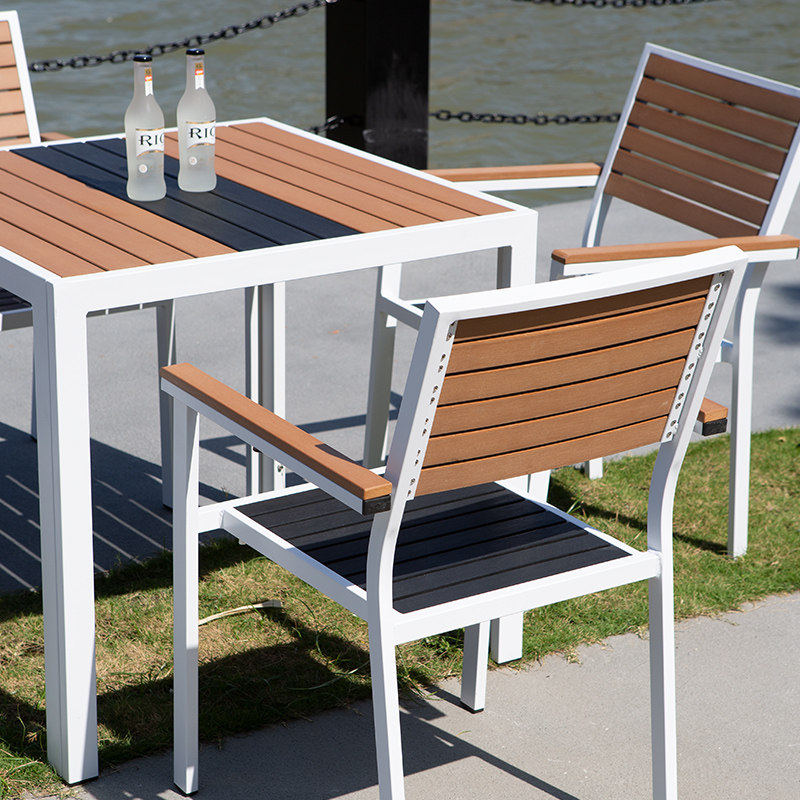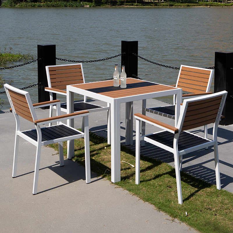 Outdoor plastic wood tables and chairs courtyard outdoor minimalist villa open-air garden leisure balcony cafe terrace color matching