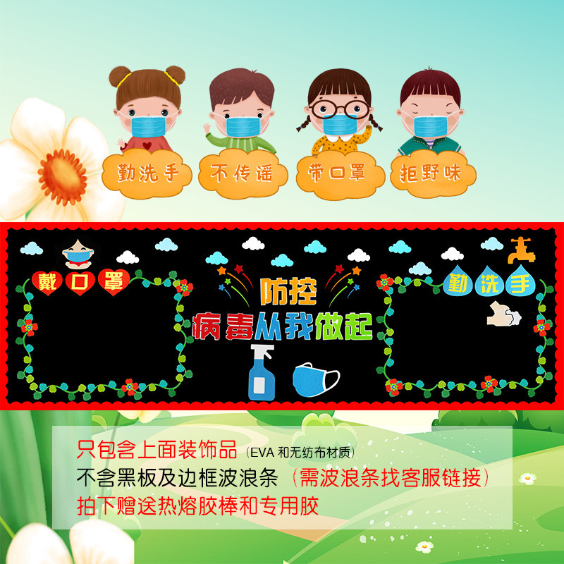 Outbreak Blackboard Newspaper Themed Fight Against Viral Collage Placement Wall Sticker school Classroom Class Prevention Primary and secondary schools
