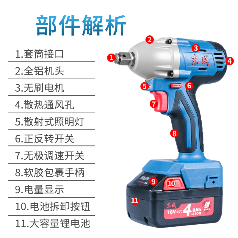 East Chengdu Brushless Electric Driver Steam Repair Frame Sub-Work Electric Pneumatic Wrench Dongcheng Power Tool Impact Wrench Lithium Electric Big