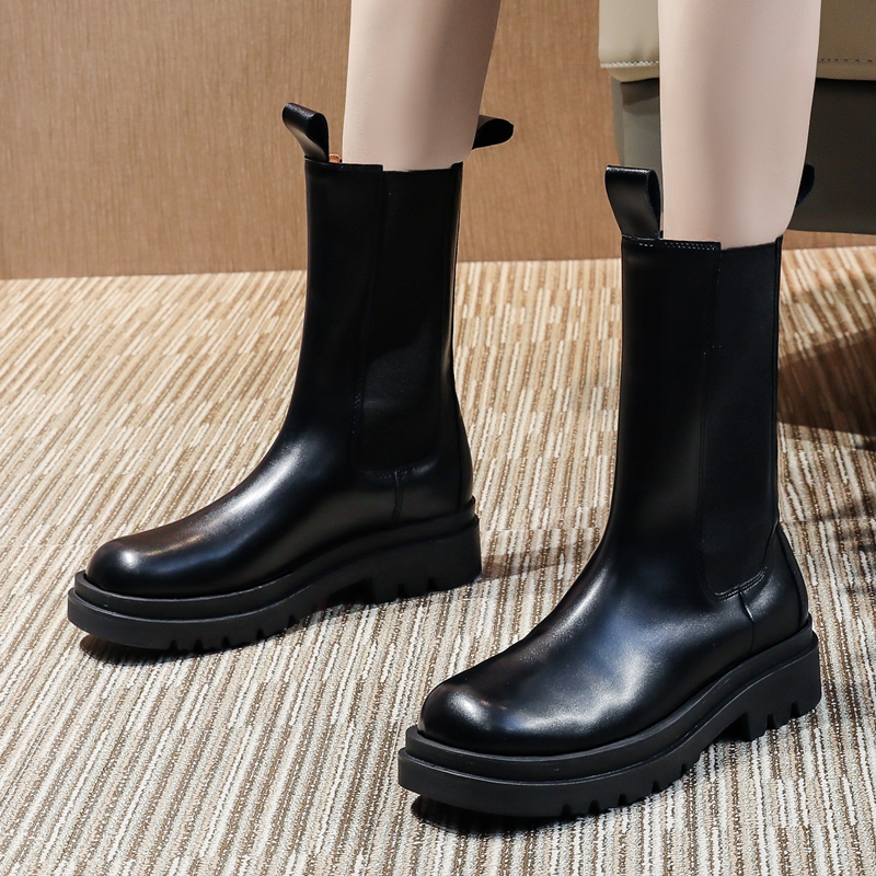 Thick Bottom Middle Cylinder Boots Woman 2020 New Tobacco Cylinders Boots Net Red Chelsea Short Boots Inglées Martin boots Chains BV