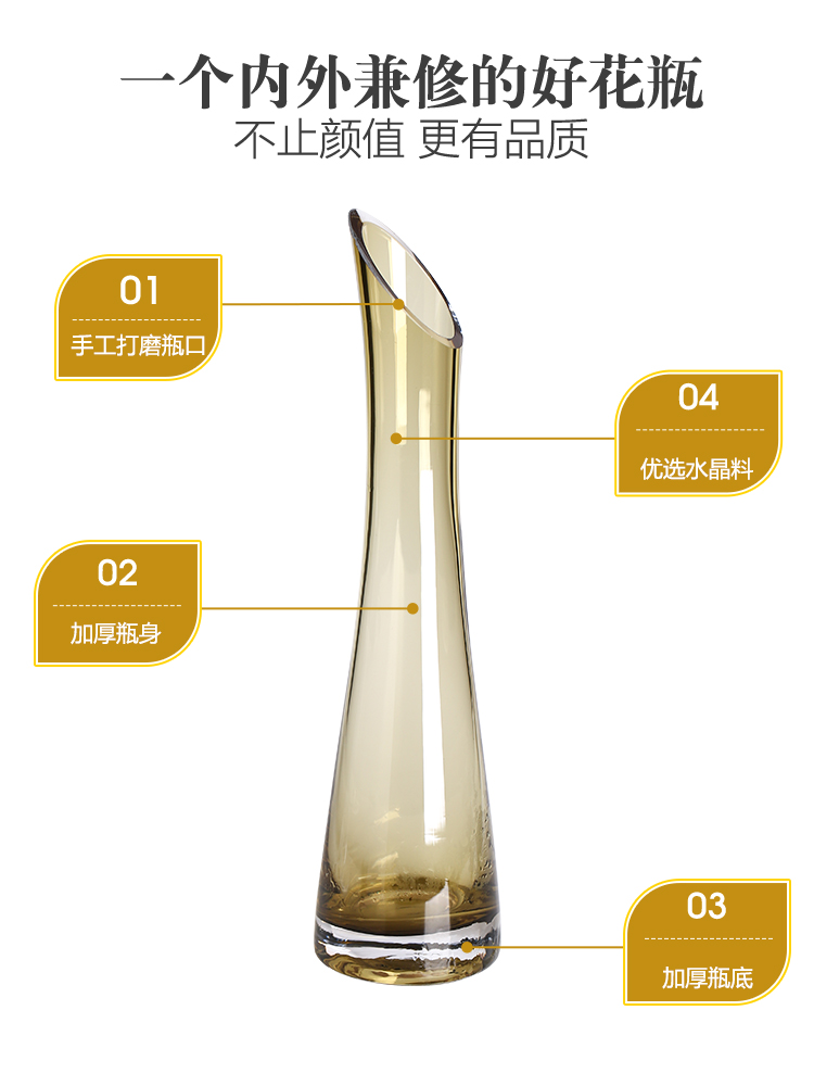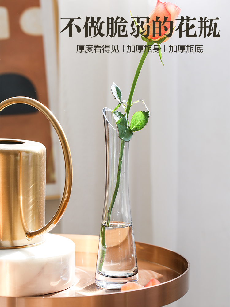 Single small vase high glass transparent living room decoration flower arrangement dried flower color fine mouth small mouth hydroponic creative Nordic