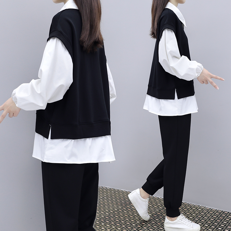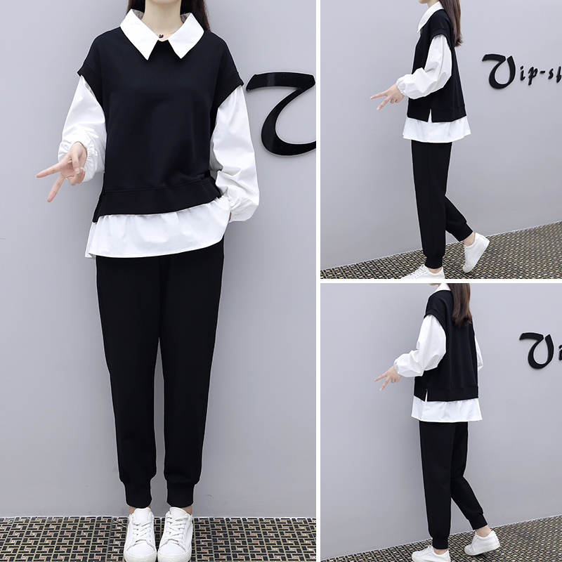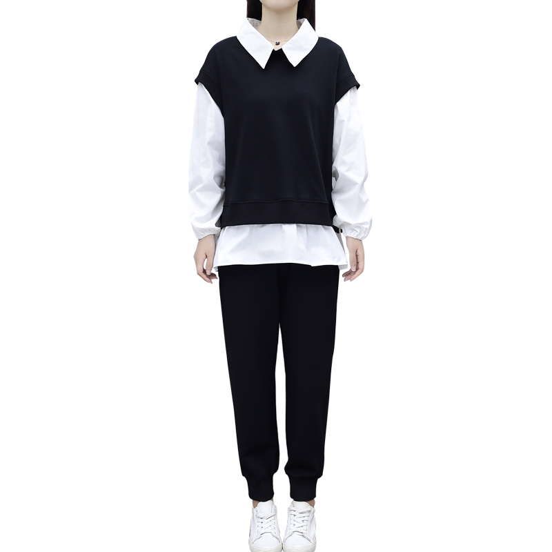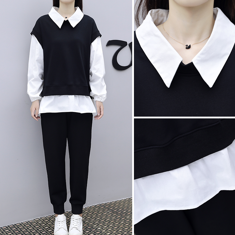 Autumn clothing age-reducing Western style casual sports suit female 2022 European fashion loose large size slimming two-piece trousers