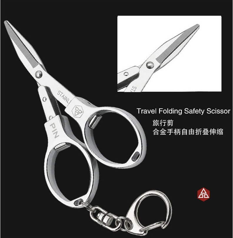 Folding scissors portable travel small scissors Stainless steel Mini fishing home small number of nail clippers square portable belt