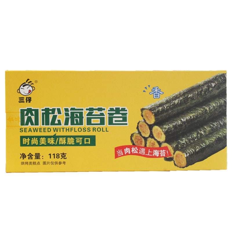 Sanzai Meat Floss Seaweed Roll 118g Sandwich Crispy Laver Sauce Heart Roll Snack Pastry East China Specialty Anhui Huangshan