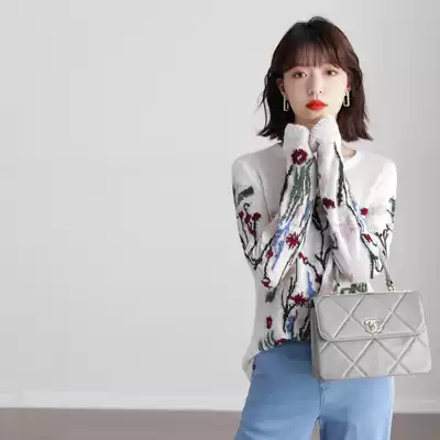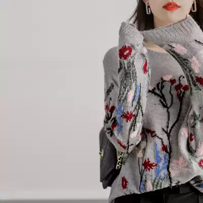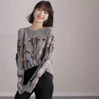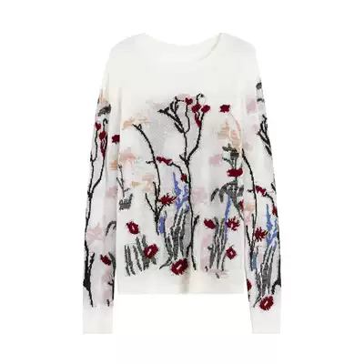 FENPERATE embroidered flowers thin through knitted top mohair cashmere hollow 2021 spring and autumn pullover