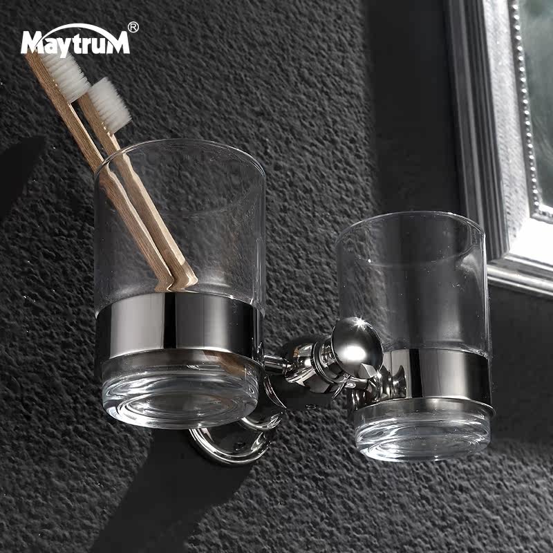 European-style bathroom hardware pendant 304 stainless steel double cup holder toothbrush cup holder mouthwash cup bathroom wall hanger
