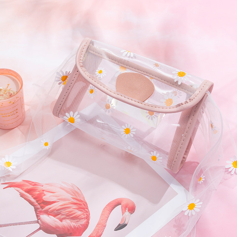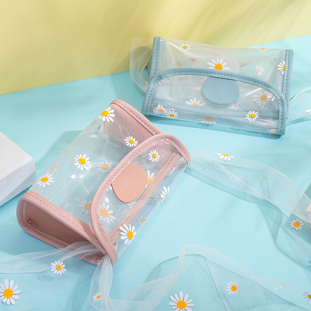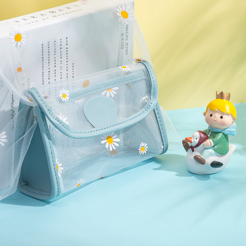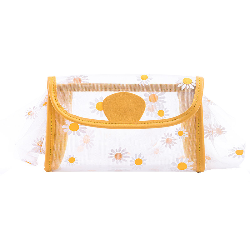 2021 new Korean version fashion small daisy small square bag woman 100 lap transparent jelly bag skew cross single shoulder bag phone bag