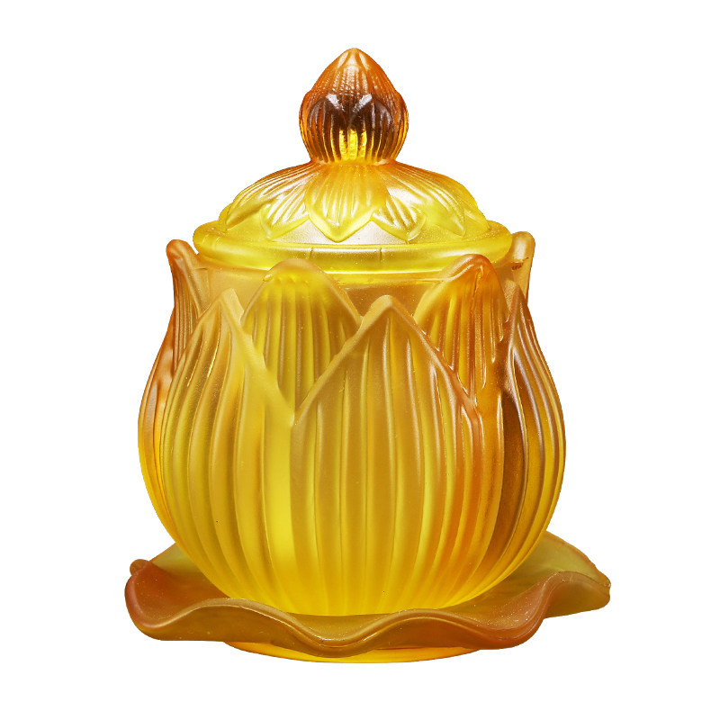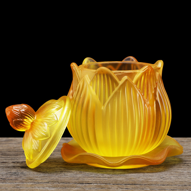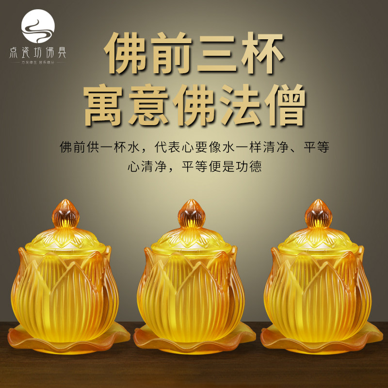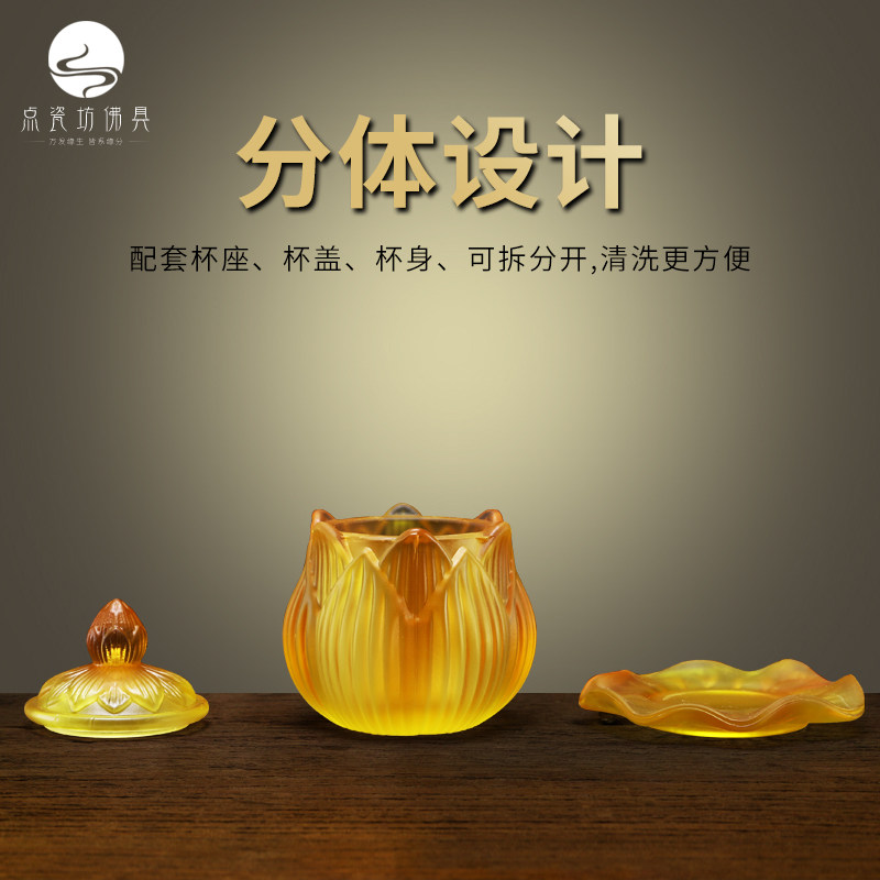 Yellow glazed holy water cup water supply cup for Buddha water cup Guanyin tribute cup water purification cup temple Buddha hall Buddha front offering cup
