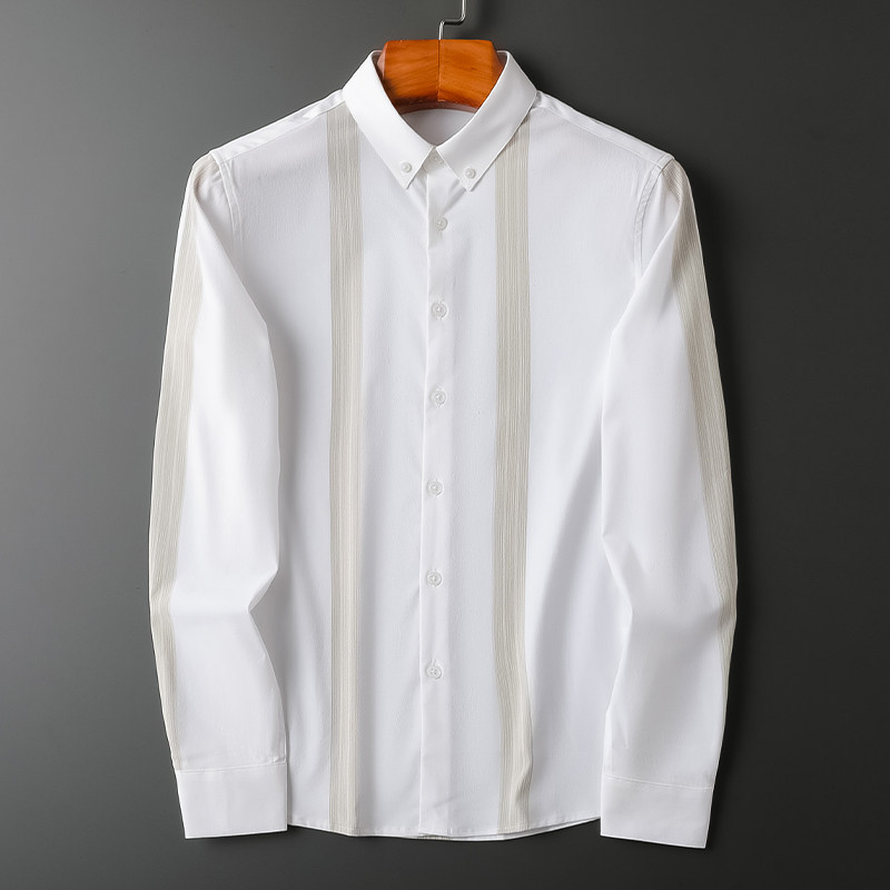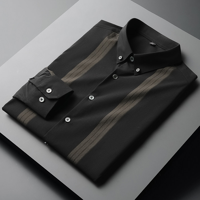Spring-Autumn Free Ironing Light Business Stripe Positive Dress Up To Work Professional Shirt Male Long Sleeve Casual Inch Sweatshirt For Men's Shirts