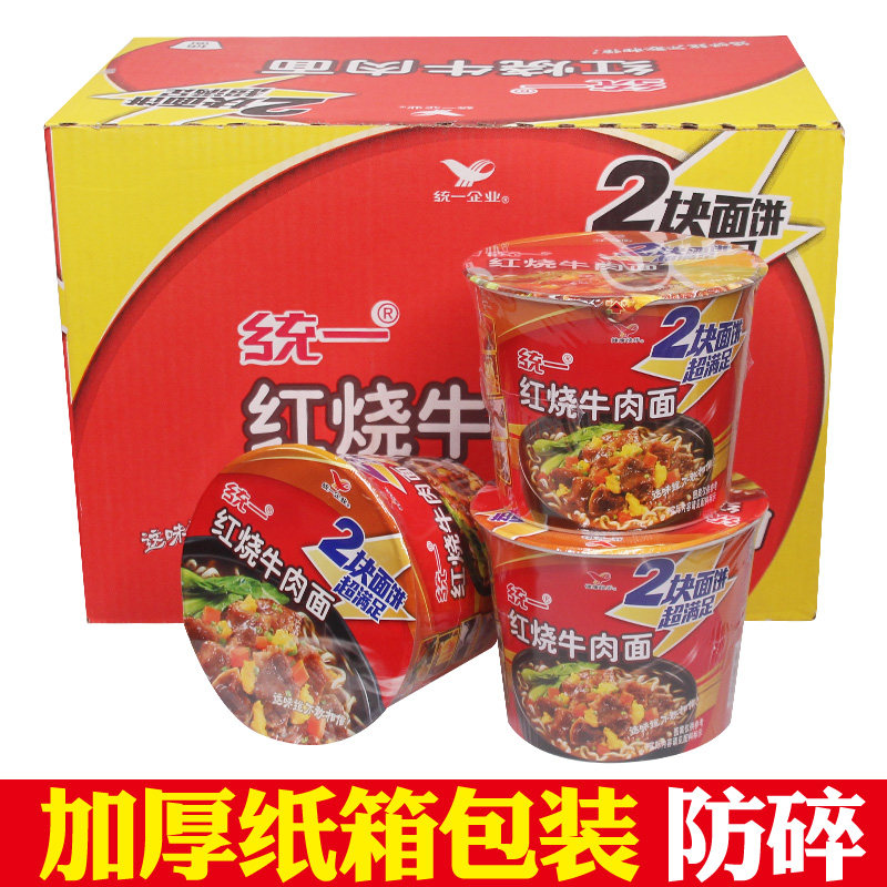 Unified to a barrel of braised spicy beef noodles 148g * 12 large barrels of 2 pieces of noodles whole box of instant noodles