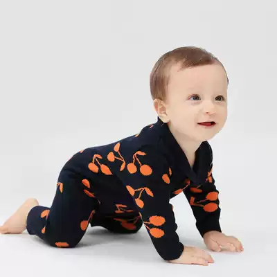 British next kid Nordic Cherry sweater baby cotton knitted padded autumn and winter jumpsuit baby ha