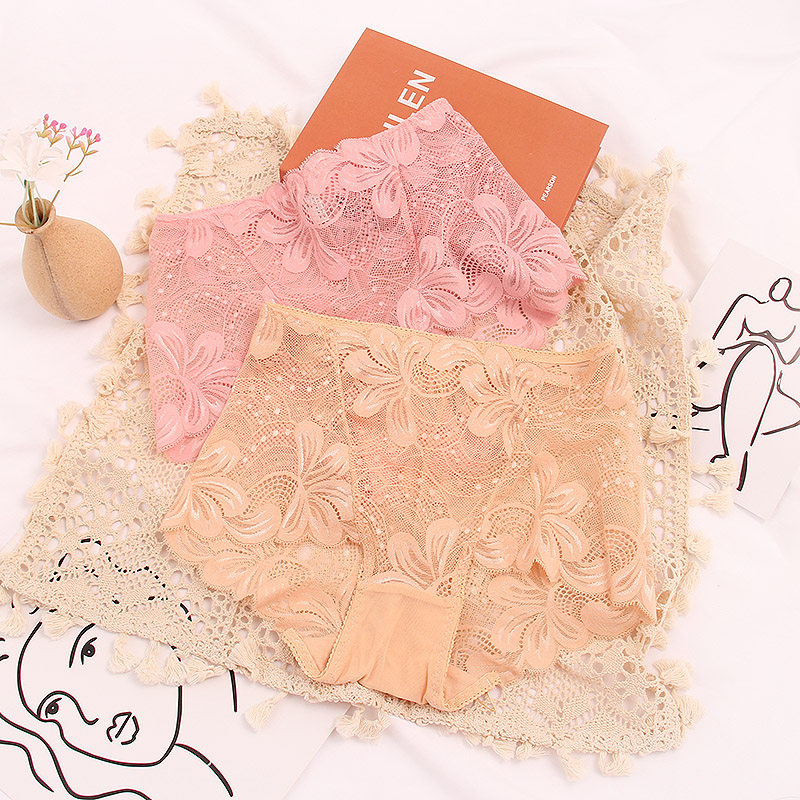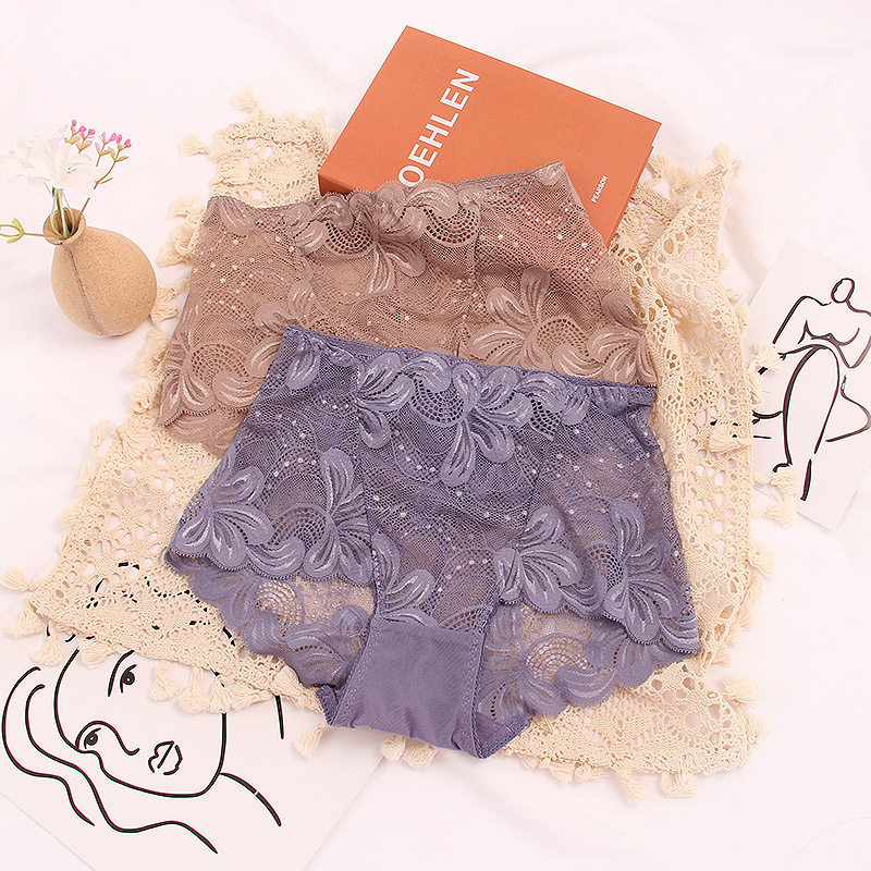 Large size ~ middle and high waist lace transparency tempts ladies trigons to fat people comfortable underwear