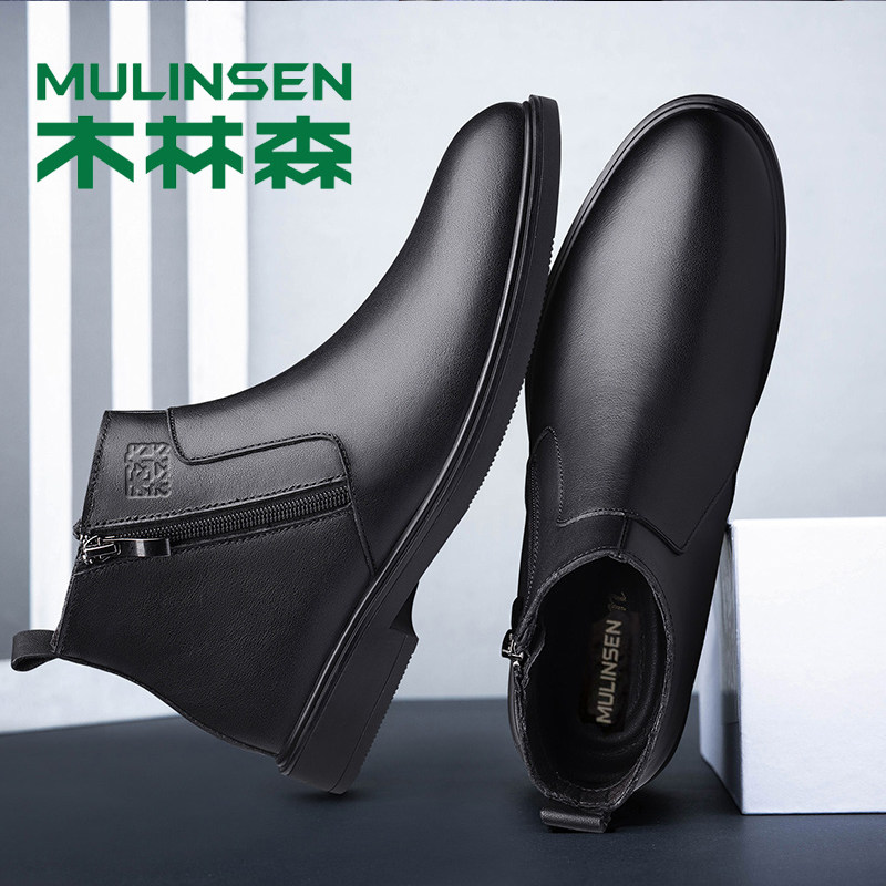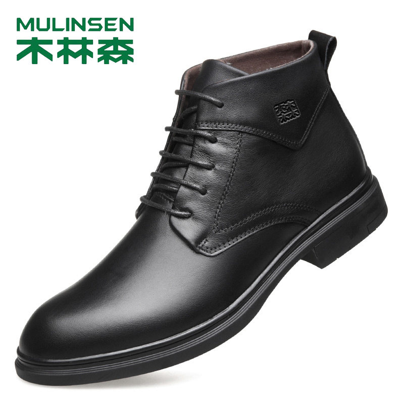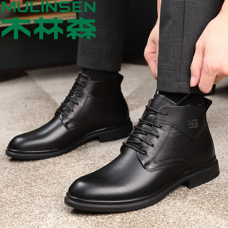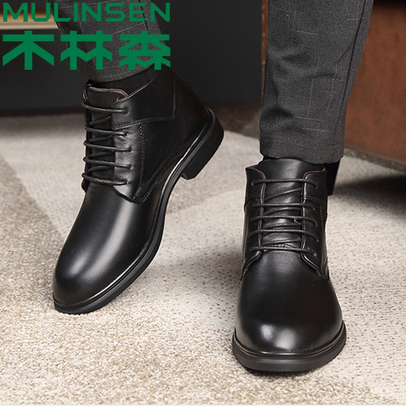 Wood Linson High Help Leather Shoes Men Genuine Leather Business Positive Dress Leather Boots Winter Gush Warm Cotton Shoes 45 Big Code 46 Short Boots