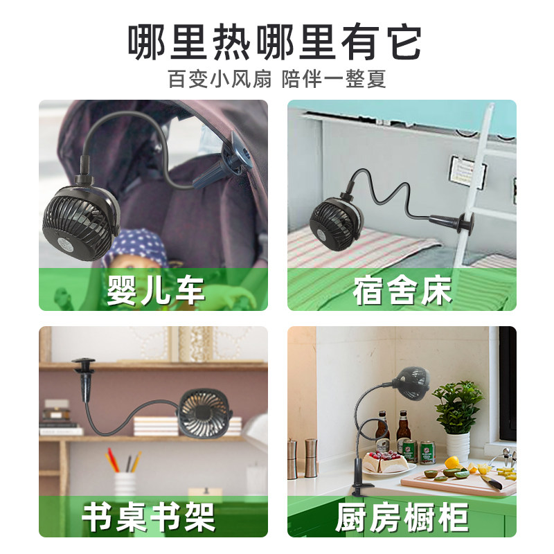 Stroller small fan clip-type lazy bracket usb rechargeable with lithium battery office mini small electric fan