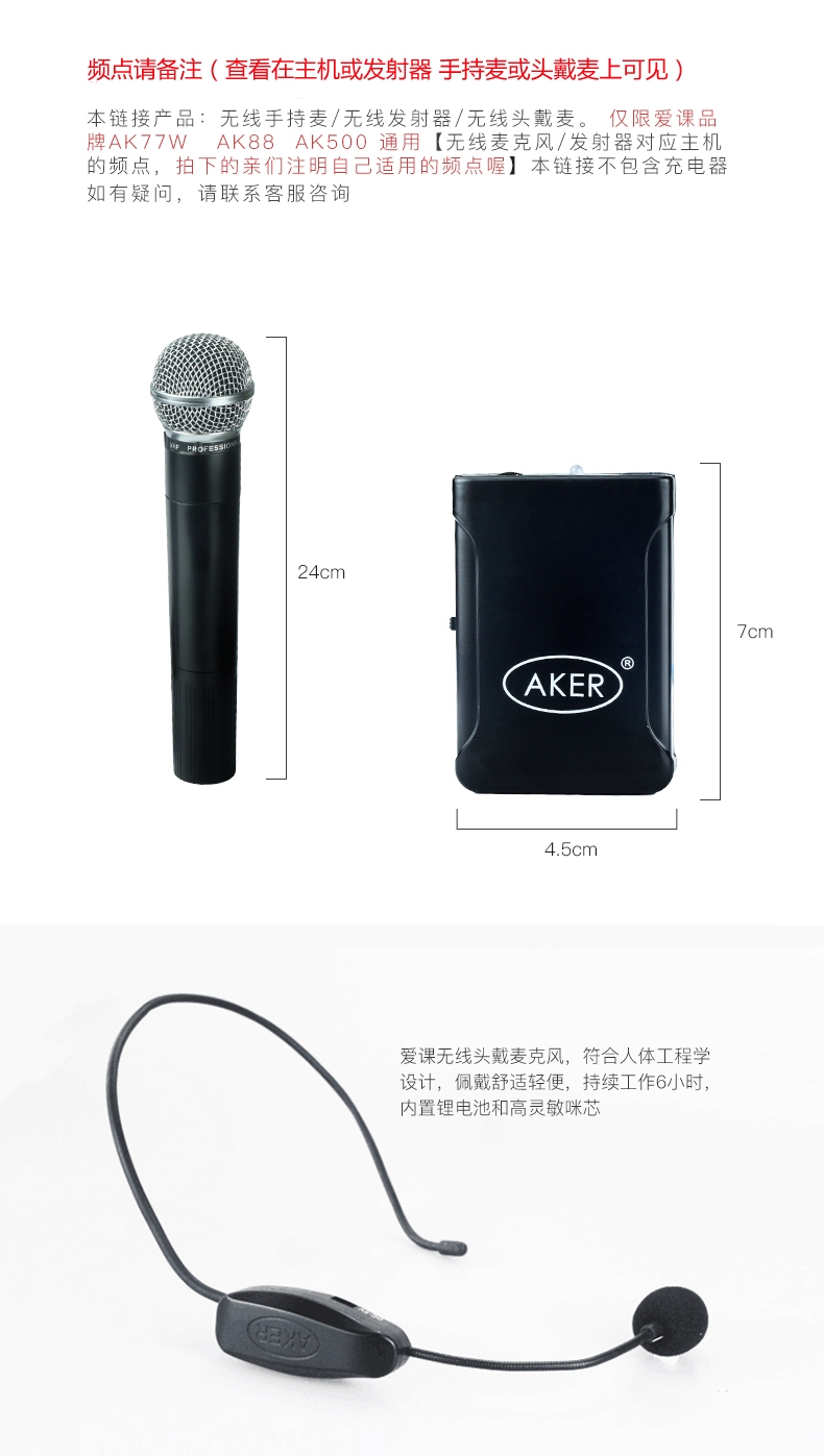 Wireless head wear Mai Ai class AK87W special handheld wheat class AK20W wireless wheat (W05X) wireless transmitter love class AK25W dedicated wireless wheat (W06) Love class AK8