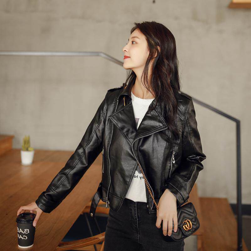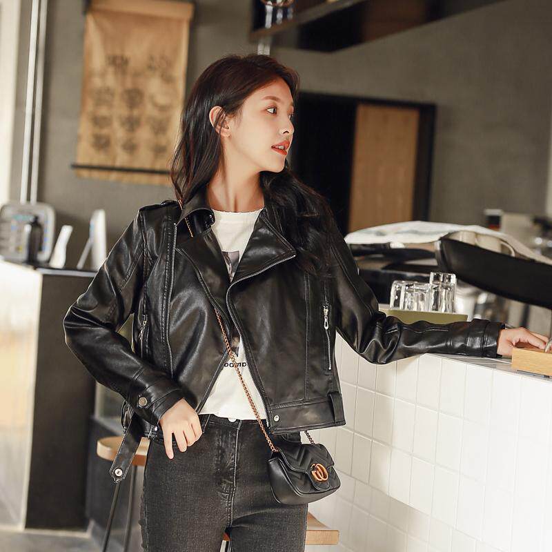 Lecea Alice Leather Coat Jacket Woman 2022 Spring new Korean version of Locomotive Leather Jacket Short jacket
