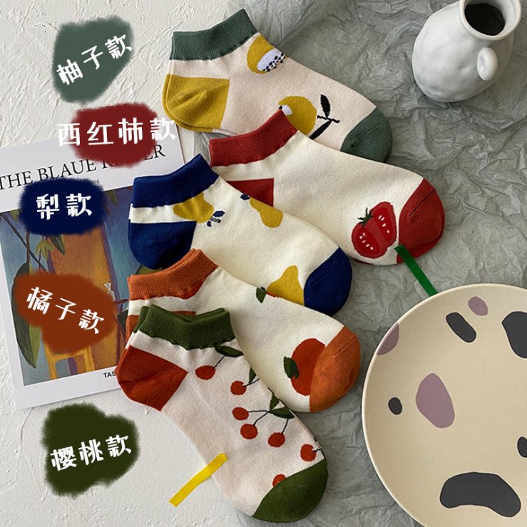 Socks women's socks shallow mouth Japanese sweet and cute cartoon fruit socks cotton socks ins tide invisible socks summer thin section