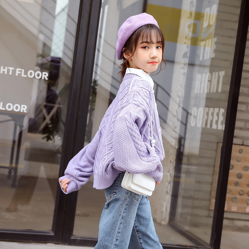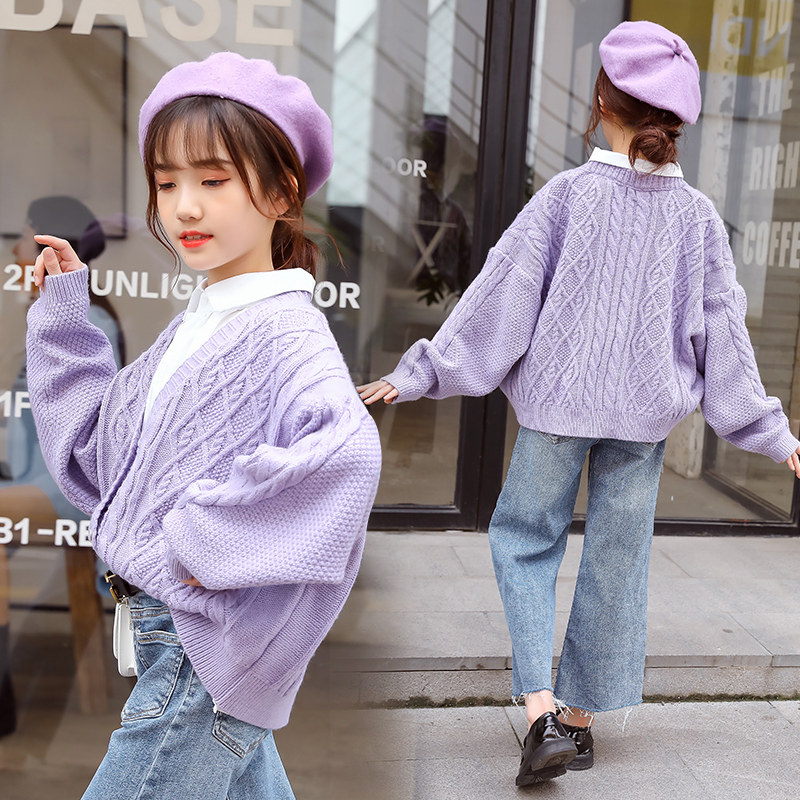 Girl Sweater Sweatshirt Hooded Jacket Spring Autumn 2022 New Children Suit Autumn blouses CUHK Girl Little Girl Little Girl Knit Cardiovert